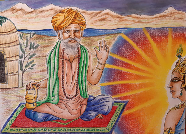 Ashram d’Utanka. Utanka médite. Krishna entre.